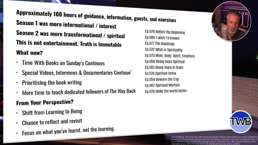 Thank you for listening to this show. If you’d like more spiritual content then check out “The Way Back to Spiritual Awakening” podcast, the “Time With Books” show, and also visit TheWayBackGroup.org where you’ll find loads of free resources to help you get the most from your spiritual journey. Check out my books and films. – Mark